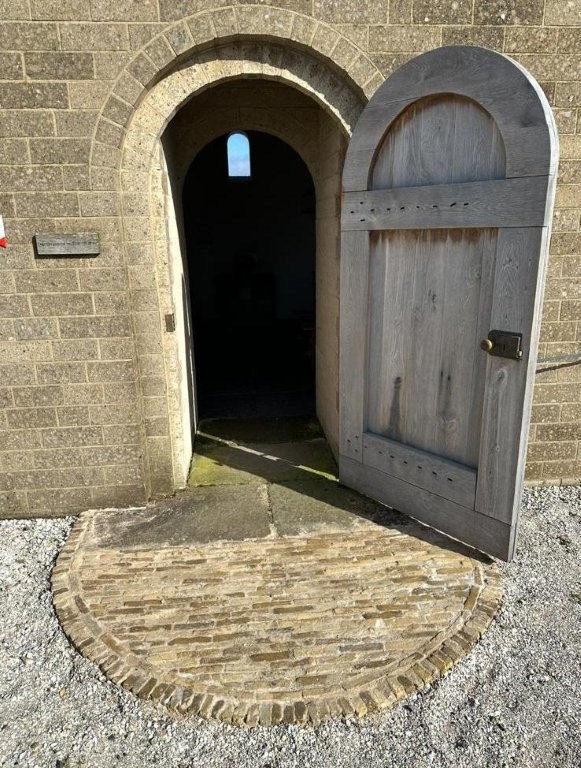 Het wat klein uitgevallen straatje voor de entree is vergroot. Nu ligt er een fraaie halve cirkel voor de deur. Met dank aan Rob Holtjer die voor de ontbrekende steentjes en een stratenmaker heeft gezorgd.